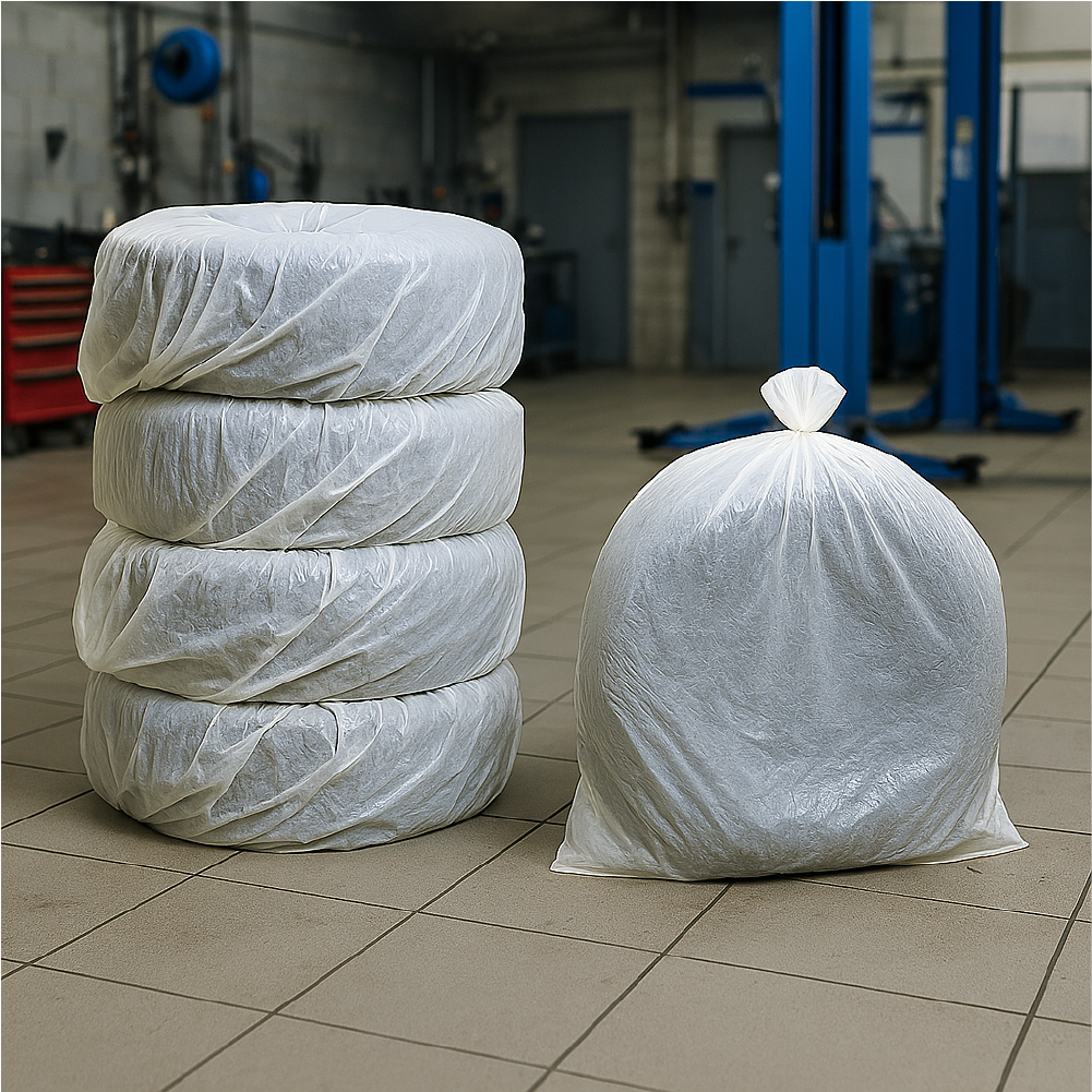 Пакети для шин — це спеціальне поліетиленове пакування, яке забезпечує акуратне та безпечне зберігання автомобільних коліс. Вони захищають гуму від пилу, вологи й забруднень, що особливо важливо під час транспортування та сезонного зберігання.